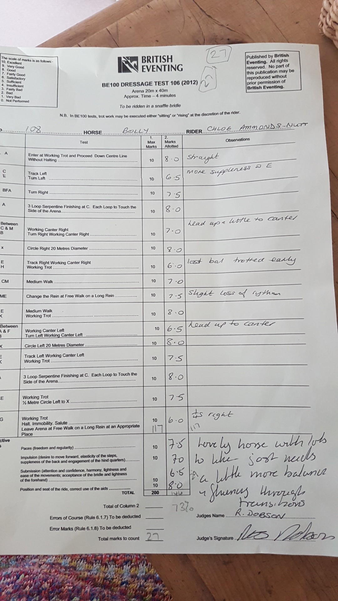 Our dressage and my riding has been revolutionised of late thanks to the expert eye and incredibly attentive teaching of Karen Shepherd. I can’t go into all her accolades (there are too many), but in short she’s bloomin’ brilliant! We began training with her last year and she’s helped unpick years of bad habits and bad teaching and now you might even go so far as to say that at times, if you squint, during a leap year, with a following wind, I could possibly pass for a dressage rider! With her words echoing in my mind I tried my best to “be more William” (can you guess who my riding position inspiration is?) “suck Bolly up in-front and swing”…yes I know it sounds odd but it worked because we scored 27! Yes 27!!! 73% in dressage speak! Off the back of last month’s combined training score of 29.5 I was over the moon to get another great score and best of all I got an 8 for my riding. Sorry I should really re-phrase that…..Karen got an 8 for my riding 😉 So looking at the score board after dressage we were in joint 1st position, what a way to go into the show jumping, and definitely not a situation I have encountered before!